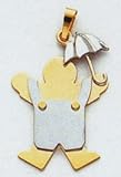 14kt Solid Two-tone Yellow Gold Boy Holding an Umbrella Charm. 1 1/4" Height & 3/4" Width. (Displayed picture size depends upon resolution and size of your monitor.)