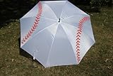 Baseball 60" golf umbrella covers 2 adults. Perfect for the sports fan. Heavy duty construction for long life. Manual open umbrella with steel shaft and black powder coat for rust protection. Gust return feature allows user to return umbrella to original form if inverted by the wind. 60" umbrella Arc.
