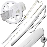 This is the Anime Sword of Rukia. Wield the sword of the Soul Reapers. The sword features a bell and streamer on the handle, chemical fiber ito and sageo and synthetic ray skin, giving it an authentic look. The blade is stainless.