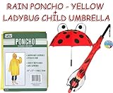 Ladybug Child Umbrella Cute Colorful Kids Rain Gear + Children's Emergency Rain Poncho Coat Rainwear w/ Hood