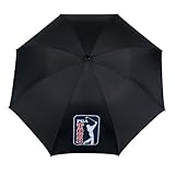 Features rustproof FRP double rib frame with patented U-shaped joint hinge. Two-color rubber handle with dual-density grip is designed to fit comfortably in your hand or securely in your push cart. Printed with PGA TOUR trademark on front panel.