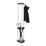 - Wood costumer with umbrella rack offers organization for garments and umbrella. Ideal for your reception area, lobby, office, waiting room, training center, conference room or classroom. Costumer has nine steel hooks with rounded tips for gentle care of your garments. Each hook holds 10 lb. Each hook has a 5/8" head and measures 1/-14" wide x 2" long. The drip tray size offers an 8-1/2" diameter. Poles are also made of steel. Costumer weighs 19 lb.