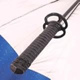 - The hilt is injected molded plastic with a metalized finish with a leatherette grip