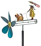 This little darling is out for a stroll with her puppy, and the rain can't dampen her spirits! Watch her umbrella twirl and her pup barks and wags his tail whenever the wind blows. Handcrafted of metal. Three-part stakes from 42" to 47" are included.