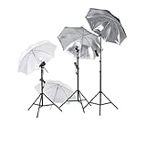 This is our ultimate umbrella set! It offers the exceptional quality that you have come to expect from Square Perfect, qualities such as the thick nylon durable construction of our umbrellas and the extra large footprint offered by our light stands, plus the incredible convenience and portability of this package. The beauty about this set is the ease and simplicity of use. It is not only one of our most cost effective flash set-ups, the quality is unmatched in the industry. With 3 45w/sFlashes, you will be taking professional photos in minutes. With the built-in slave, the flashes automatically fire as soon as it sees the first one--this isaccomplishedby the use of built in Optical slaves. This umbrella set will capture soft light and spread it over a large area, giving you maximum control over staging. Quick release levers help to make set up and tear down take just minutes. (2) Silver/Black Umbrellas (2) Standard Umbrellas (3) Light brackets with Umbrella Holders (3) Premium Grade Synch Flashes (45 w/s) (3) Premium Light Stands