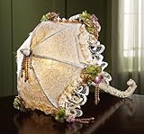 Victorian Umbrella Light: Chances are, you ve never seen a lamp like this one! Shaped like a parasol and lavished with feminine detailing, it adds a soft, romantic touch to any corner of the room. Plugs into AC outlet. Uses max. 25W bulb (not incl.). Fabric lace umbrella "shade" with plastic handle. 10"H x 10 1/4"Dia....