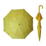 Yellow Girls Umbrella for Kids - Polka Dot Parasol with Double Ruffles