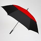 The Davek The Golf Umbrella is an oversized umbrella perfect for the golf course or using daily in keeping multiple people dry from the rain. Featuring a massive size canopy of sixty two inches, the Davek Golf Umbrella is guaranteed to endure gale-force winds of over 60 mph and with an auto open button system is quick and simple to operate. For the golfer, rotate the umbrella handle's base to expose a sleek aluminum-alloy "anchor spike". Push the spike into the turf to keep your open umbrella in place while taking your golf shot. And, once the open umbrella is anchored, individual clubs can be propped against the ribs to keep them upright and dry while you take your shot. Not exclusively for golfers, the Davek The Golf Umbrella is the largest Davek Umbrella giving you maximum coverage in storms. Lifetime Guarantee: Each Davek umbrella comes with an unconditional Lifetime Guarantee. If, during its lifetime, you find any defect in material or workmanship, or the umbrella should fail to function, Davek will repair or replace it. And, if you lose your umbrella, Davek will replace it for half price. After receiving your package, please register your umbrella with Davek in order to ensure quick and easy service of your Lifetime Guarantee. Colors: Black/Deep Red, Black/Royal Blue, Black/Sport Green, Black/Sport Yellow and Classic Black. Coverage Arc: 62" diameter ("arc-diameter" includes the curve). Closed Length: 40". Weight: 2 lbs. Button Closure System: Auto open, manual close. /* */
