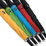 60" dia. canopy. Exclusive "Duplex Frame" dual-canopy design navigates wind through its vented construction. This umbrella has been windtunnel-tested at MIT Aeronautics & Astronautics and guaranteed to endure gale-force winds of over 60 mph. Extremely strong fiberglass shaft for unsurpassed stability. Auto-open button system. Our Davek Golf Umbrella features an oversized arc canopy to give you maximum coverage in any weather. This umbrella also has special features just for golfers — like an aluminum alloy anchor spike that pushes into the turf, keeping your open umbrella in place and your clubs protected while you take your shot.. . . . . 190-thread count microweave fabric.